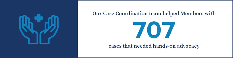 - Our Care Coordination team helped Members with 707 cases that needed hands-on advocacy.