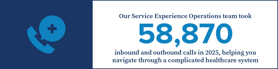 - Our Service Experience Operations (SXO) team took 58,870 inbound and outbound calls in 2025, helping you navigate through a complicated healthcare system.