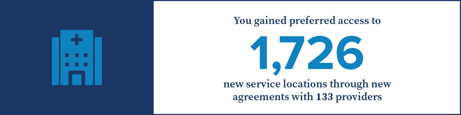 - Our Provider Relations team established agreements with 133 providers to become Preferred Providers, totaling 1,726 new service locations.